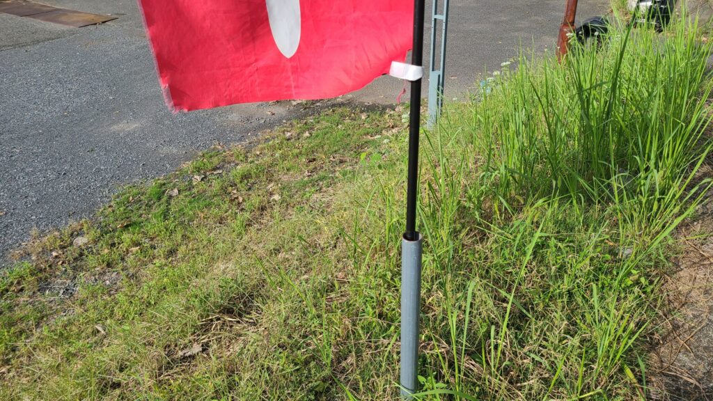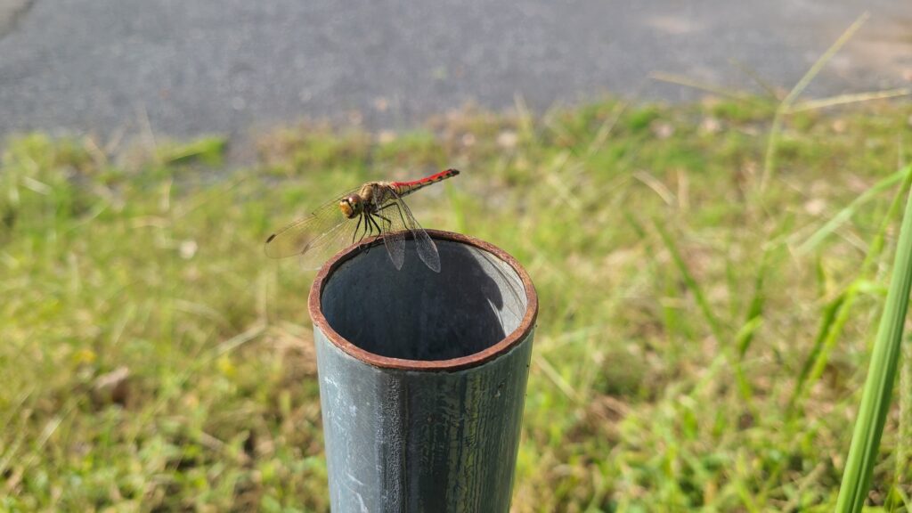 のぼり旗のパイプでとんぼが一休み ☺️☺️